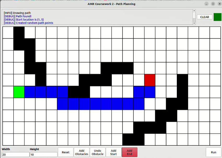 该算法实现了 A* 搜索,在避开障碍物的同时,有效地找到了起点和目标之间的最短路径